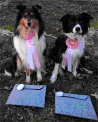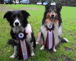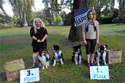 Klasse 1 Sturm Manuela mit Mogli Eliza vom Buckenhofer Forst "V" 97 Punkte, Platz 2 Klasse 2 Sturm Manuela mit Six Senth BC aus der Alten Noris "V" 97 Punkte, Platz 4